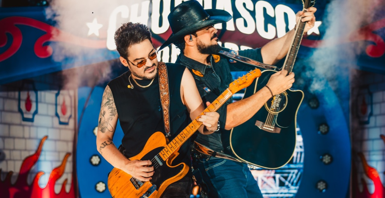 Outro diferencial do projeto é sua estrutura de palco. O Churrasco On Fire conta hoje com o maior palco itinerante da América Latina, formado por 12 espaços distintos distribuídos pelo evento. Não existe um palco principal fixo. A proposta é criar proximidade com o público e permitir que o show aconteça em diferentes pontos do espaço ao longo da apresentação. O espetáculo começa a mais de 10 metros de altura e se desenvolve em uma estrutura móvel que conecta diferentes palcos durante as três horas de show.