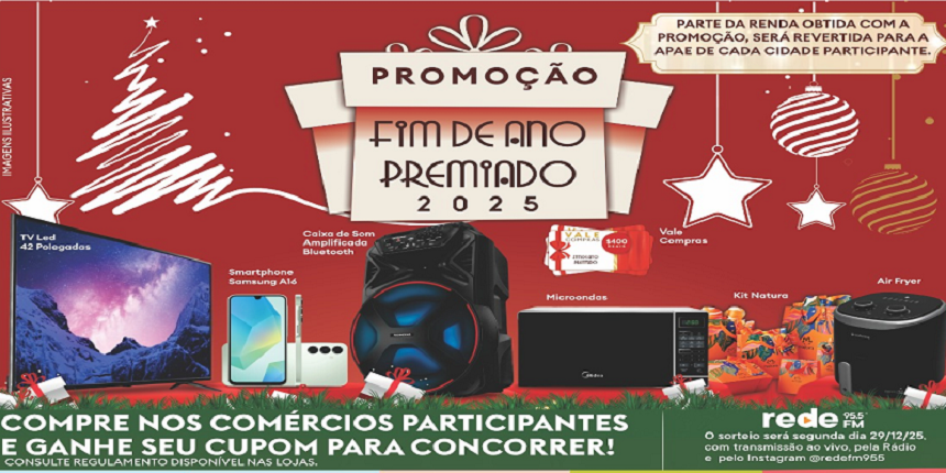 15 – É vedada a participação no sorteio dos sócios e administradores dos estabelecimentos promotores deste evento e também da emissora de rádio REDE FM, que realizará a transmissão e sorteio no dia 29/12/2025.